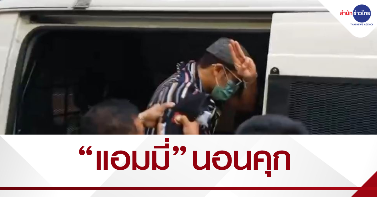 โดยหลังจากศาลมีคำสั่งไม่ให้ประกันตัว เจ้าหน้าที่ราชทัณฑ์ได้นำผู้ต้องหานั่งรถเข็น โดยใช้เส้นทางเชื่อมระหว่างอาคารเฉลิมพระเกียรติ ลงไปยังใต้ถุนลานจอดรถ เพื่อหลีกเลี่ยงผู้สื่อข่าวที่มาปักหลักรออยู่ด้านหน้าอาคาร โดยก่อนขึ้นรถตู้ “แอมมี่” ได้ชูสัญลักษณ์ 3 นิ้ว