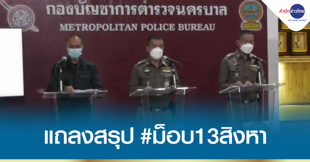 เมื่อเวลา 20.30 น. วันนี้ (13 ส.ค.) ที่กองบัญชาการตำรวจนครบาล พล.ต.ต.ยิ่งยศ เทพจำนงค์ โฆษก ตร. พร้อมด้วย พล.ต.ต.ปิยะ ต๊ะวิชัย รอง ผบช.น. ในฐานะโฆษก บช.น. และ พ.ต.อ.กฤษณะ พัฒนเจริญ รองโฆษก ตร. ได้แถลงสรุปสถานการณ์การชุมนุมของกลุ่มเห็นต่างทางการเมือง เมื่อช่วงเย็นที่ผ่านมา