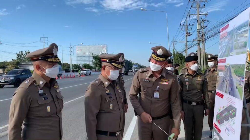 วันนี้ 3 ม.ค.2565 เวลา 14.00 น.ผู้สื่อข่าวรายงานว่า พล.ต.อ.ดำรงศักดิ์ กิตติประภัสร์ รอง ผบ.ตร. พร้อมด้วย พล.ต.ท.ประจวบ วงศ์สุข ผช.ผบ.ตร., พล.ต.ต.อุดร ยอมเจริญ รอง ผบช.ภ.1, พล.ต.ต.เอกราช ลิ้มสังกาศ ผบก.ทล. พร้อมคณะ ร่วมตรวจสภาพการจราจร ในช่วงเทศกาลปีใหม่ 2565