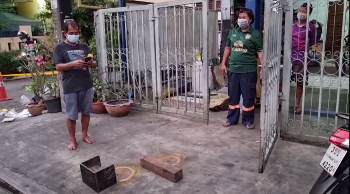 ชาวบ้านที่เห็นเหตุการณ์ เล่าว่า ขณะอยู่ภายในบ้านได้ยินเสียงปืน จำนวน 5 นัด จึงเดินออกมาดู พบผู้ก่อเหตุกำลังพยายามสตาร์ทรถจักรยานยนต์ แต่สตาร์ทประมาณ 4-5 ครั้ง ก็ไม่ติด ระหว่างนั้นมีรถจักรยานยนต์รับจ้างผ่านมา ผู้ก่อเหตุจึงเรียกและขึ้นซ้อนท้ายพร้อมกับหญิงสาวคนหนึ่ง โดยใช้อาวุธปืนจี้ไปที่หลัง บังคับให้พาหนีออกไปทางปากซอย ถนนทางรถไฟสายเก่าปากน้ำ จากนั้นจึงได้ลงมาดูคนเจ็บ พบว่ายังมีลมหายใจและสามารถสื่อสารได้ พร้อมระบุว่ารู้จักคนที่ก่อเหตุ ชื่อเจ เป็นคนอยู่ในย่านนี้