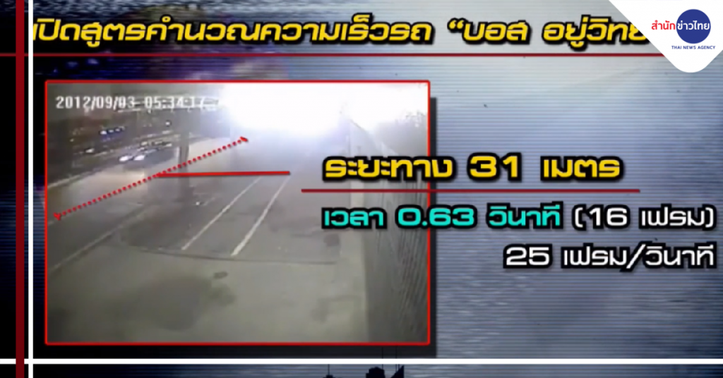 สำนักข่าวไทย 31 ก.ค.-เรื่องความเร็วของรถเฟอร์รารี่ที่ “บอส อยู่วิทยา” ใช้ มีการถกเถียงกันและนำมาซึ่งหลักฐานใหม่ที่ทำให้อัยการไม่สั่งฟ้อง วันนี้ผู้สื่อข่าวสำนักข่าวไทยพาไปตรวจสอบสูตรคำนวณจากผู้เชี่ยวชาญด้านฟิสิกส์และคณิตศาสตร์ที่คำนวณความเร็วรถออกมาตรงกันที่ 177 กม./ชม. ซึ่งขัดกับข้อมูลใหม่ที่บอกว่าความเร็วเพียง 76 กม./ชม. ติดตามจากรายงาน