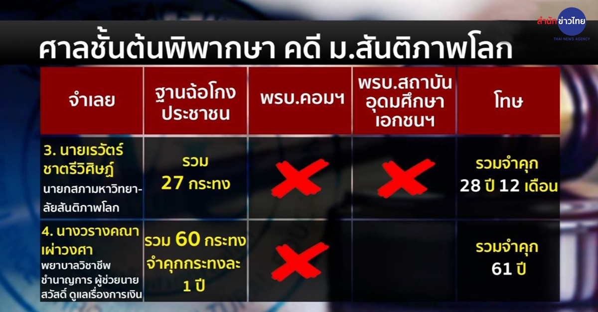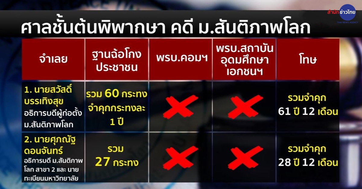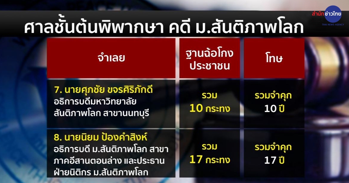 จำคุก 10 ปี ผู้บริหาร ม.สันติภาพโลก