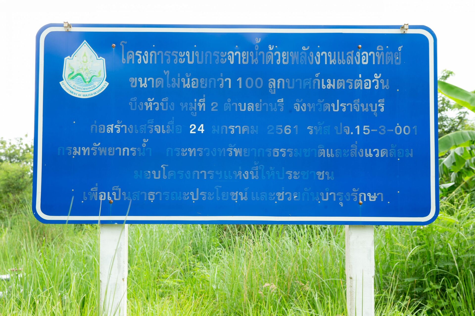 กรมทรัพยากรน้ำ ยังได้เดิหน้าโครงการอนุรักษ์ฟื้นฟูบึงหัวบึง บ้านท่าทองคำ จ.ปราจีนบุรี ก่อสร้างระบบกระจายน้ำด้วยพลังงานแสงอาทิตย์ เพื่อแก้ปัญหาแหล่งน้ำต้นทุนไม่เพียงพอ นำไปสู่การใช้ประโยชน์จากแหล่งน้ำในระยะยาว ดำเนินโครงการอนุรักษ์ฟื้นฟูแหล่งน้ำห้วยใหญ่ และระบบกระจายน้ำพลังงานแสงอาทิตย์ เพื่อเพิ่มน้ำต้นทุนและเพิ่มประสิทธิภาพการใช้น้ำ ส่งผลให้ชุมชนมี น้ำกิน น้ำใช้ อย่างมั่นคง ชาวบ้านลดต้นทุนในการผลิต เนื่องจากมีระบบกระจายน้ำพลังงานแสงอาทิตย์เข้ามาส่งเสริมในการเพาะปลูก ทำให้มีรายได้ต่อเดือนเพิ่มขึ้น