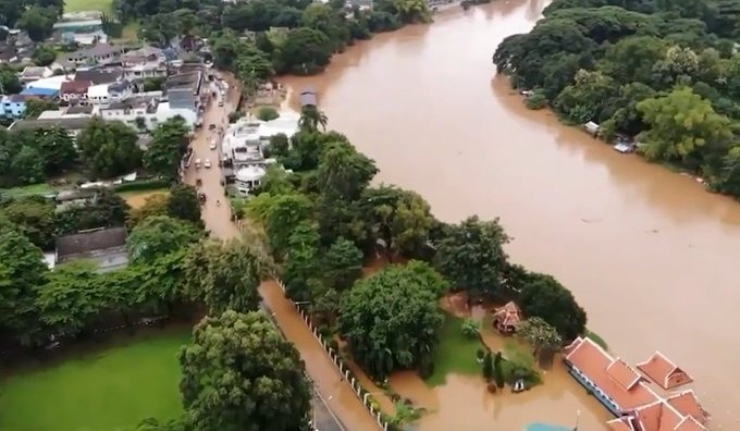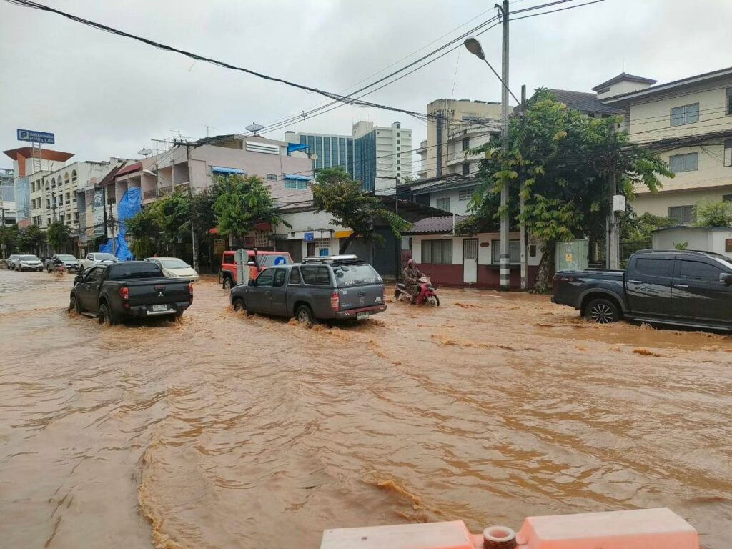 The Ping River was 4.00-4.10 meters deep and overflowed to some central parts of Chiang Mai this morning. The levels exceeded its safe threshold by nearly 60 centimeters. Vast areas in the heart of the province by the river were inundated including the Pa Phrao Nok community and Charoen Prathet Road. Some locations were more than one meter under water and floodwater was rising.