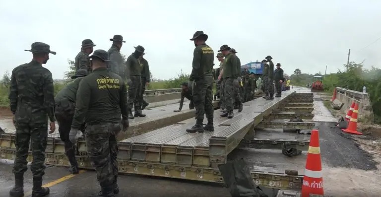 In Non Thai district, flood currents destroyed the embankments of a bridge on Ban Krasiao-Ban Chok Road which became impassable. Soldiers installed a temporary bridge for locals.