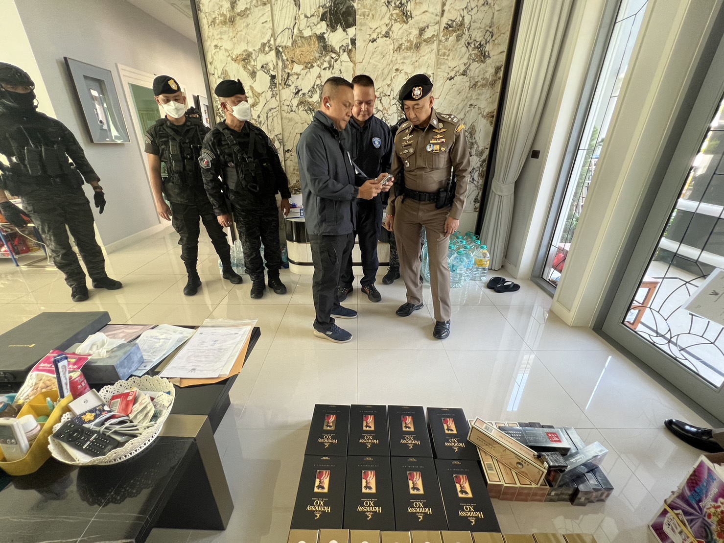 Police searched three residential places in Prawet and Sukhumvit areas. They arrested 10 Chinese suspects and impounded about 10 luxury cars, 42 million baht in cash and luxury bags worth about 300 million baht.