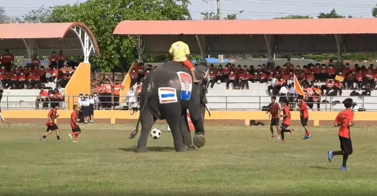 AYUTTHAYA, Dec 14 (TNA) – Amid the World Cup 2022 fever, people in this central plain province organized a special and rare football match between school children and elephants which was fun and ended with a penalty shoot-out.