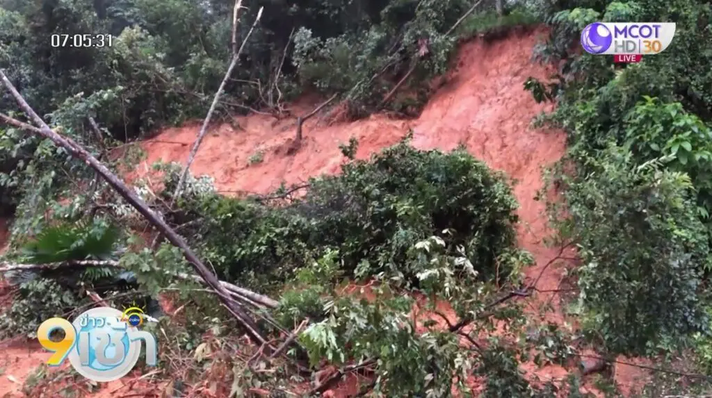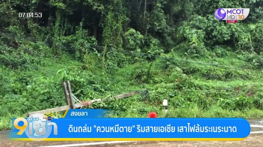 Heavy rains continued in Songkhla for days and caused flooding, run-off, erosion and landslides. A landslide from the Mee Tai mountain on the Asian Highway where Na Mom and Chana districts adjoin toppled about 10 power poles and lamp poles. Workers rushed into clearing soil and mud from the main highway. (TNA)