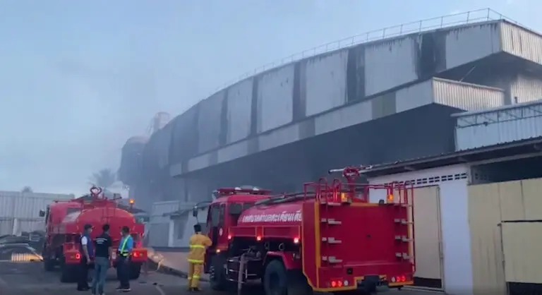 The fire erupted at the plant in Bang Lamung district at about 4am. About 100 firefighters and 20 fire trucks were deployed to control the blaze and prevent it from reaching a tank containing about 15,000 liters of oil in the same compound.