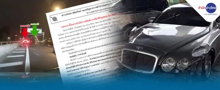 BANGKOK, Jan 12 (TNA) – The driver of the Bentley car, which crashed into a Mitsubishi Pajero on a Bangkok’s expressway early Sunday has been charged with drink driving as he refused to take a breathalyzer test after the accident.