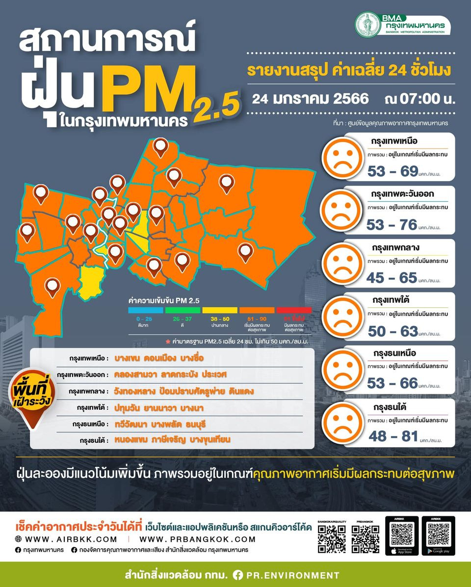 Bangkok governor Chadchart Sittipunt said experts warned people to wear N95 masks or surgical masks and should refrain from outdoor activities between 4-5 a.m.