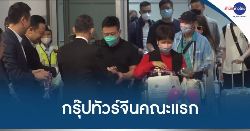 BANGKOK, Feb 6 (TNA) – The first tour group from China arrived at Bangkok’s Don Mueang Airport on Monday after China resumed outbound group tours to 20 countries from today.