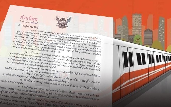 Chuvit raised the issue regarding the Orange Line project overseen by the Transport Ministry during press briefing at Government House and the Transport Ministry on Feb 21 and 24, claiming that some 30 billion baht had allegedly been taken from the project and transferred to an HSBC bank account in Singapore for an investment in political campaigns.