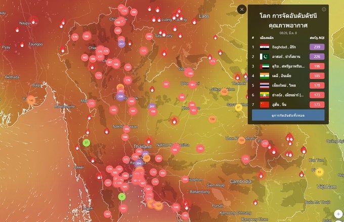 CHIANG MAI, March 8 (TNA) – Chiang Mai was ranked the world’s fifth most polluted city for air quality on Wednesday morning, according to Iqair.com as a doctor advised local residents to wear N95 masks.