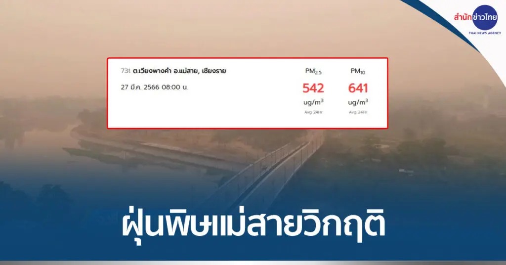 The Health Department said the concentration of PM2.5 in Chiang Rai’s Mae Sai district yesterday was at 32 times the level recommended by the World Health Organisation (WHO).
