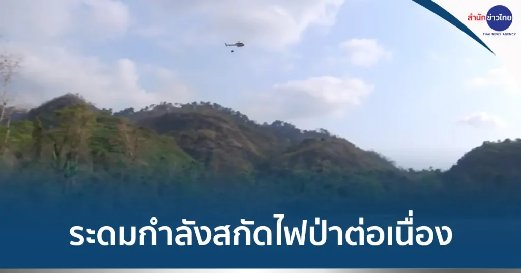 NAKHON NAYOK, March 31 (TNA) – Helicopters have been used to dump water to contain a fire on the mountains in Nakhon Nayok as officials are worried that the fire could spread to Khao Yai national park, located two kilometres away.