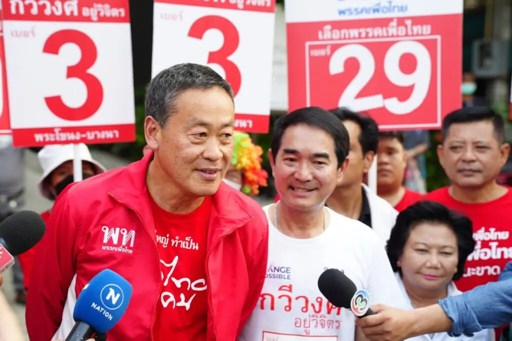 Srettha on Monday joined campaigning to woo voters for the Pheu Thai constituency candidates in Bangkok’s Bangna district.