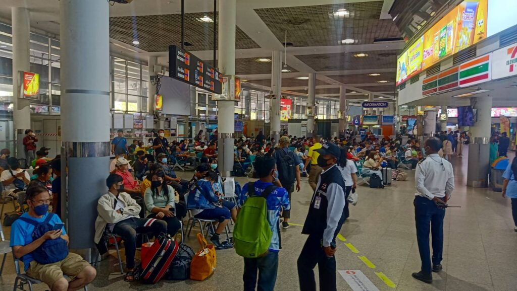 Managing Director of Transport Co Ltd Sanyalak Panwattanalikhit said the Bangkok Bus Terminal (Mo Chit 2) has been packed with passengers since Wednesday afternoon. Enough rest areas were prepared to cater to waiting passengers and additional air-conditioning units were installed to cool them down from hot summer weather.