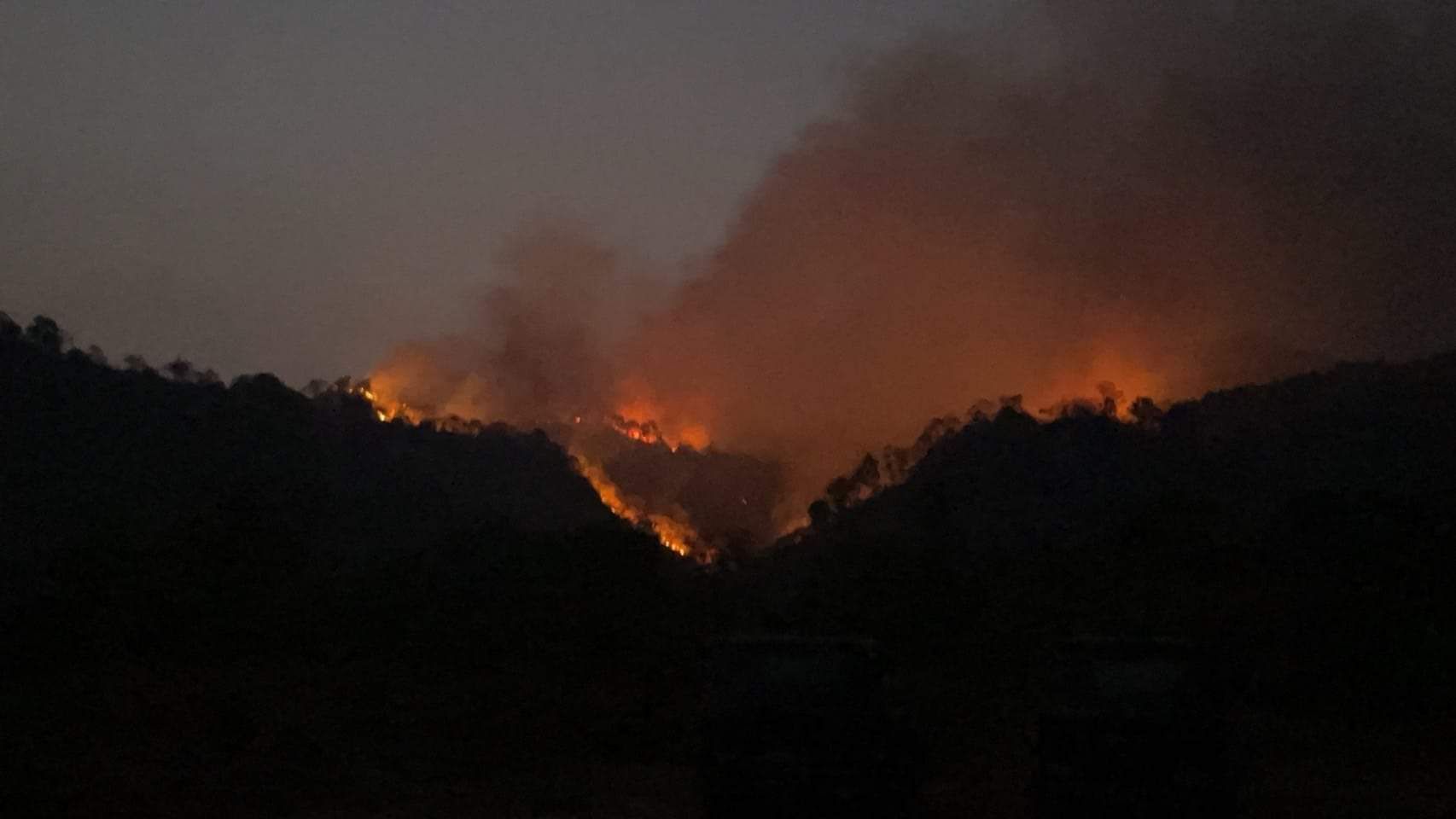 The Royal Thai Army dispatched a helicopter to survey the area and to assess the situation. Meanwhile, 25 firefighters and 15 soldiers are entering the area on foot for the fire-fighting operation. (TNA)