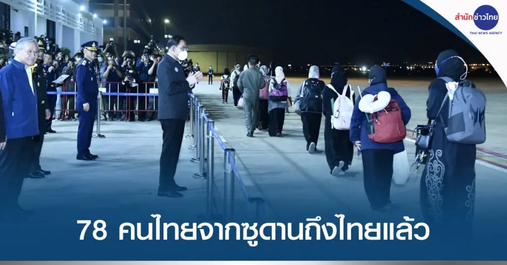 BANGKOK, April 28 (TNA) – Prime Minister Gen. Prayut Chan-ocha received 78 Thai nationals, returning from Sudan at the Don Mueang Royal Thai Air Force Base on Thursday night.