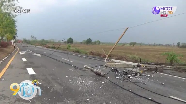 In Nakhon Nayok, severe storm on Monday triggered flooding in the Muang Nakhon Nayok municipality areas, toppling billboards and structures. A transformer was struck by lightning, leading to a fire at a roadside coffee stall.