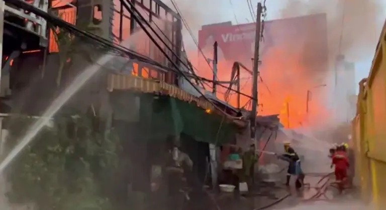 The fire raging wooden row houses was reported at 5.45 am in Talat Phlu area, Thonburi district. Firefighters rushed to the scene and spent about 45 minutes to put the blaze under control.