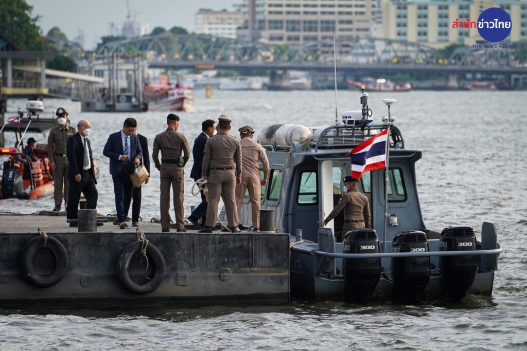 After the parliamentary session ended, senators left the parliament by boat to avoid protesters, gathering nearby. (TNA)