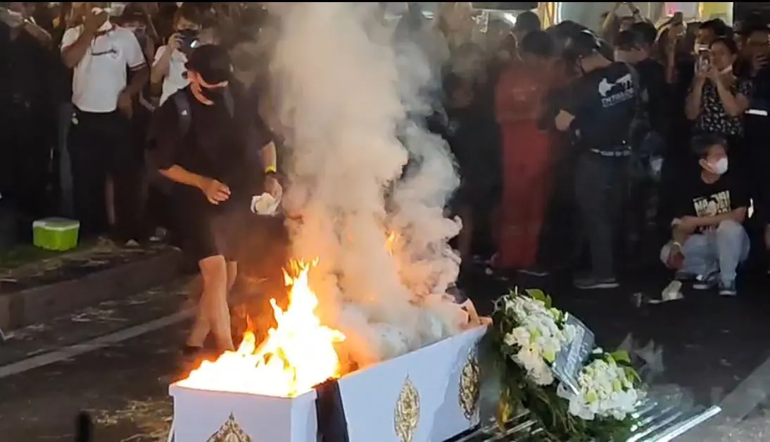 Following the announcement, they collectively engaged in the symbolic cremation ceremony of the Senate and the Constitution Court. The organizers had prepared a coffin and protesters placed photos of senators in the coffin before setting them ablaze. This ceremony marked the end of the demonstration at 10:30 PM, and they scheduled further activities to wear black starting from tomorrow.