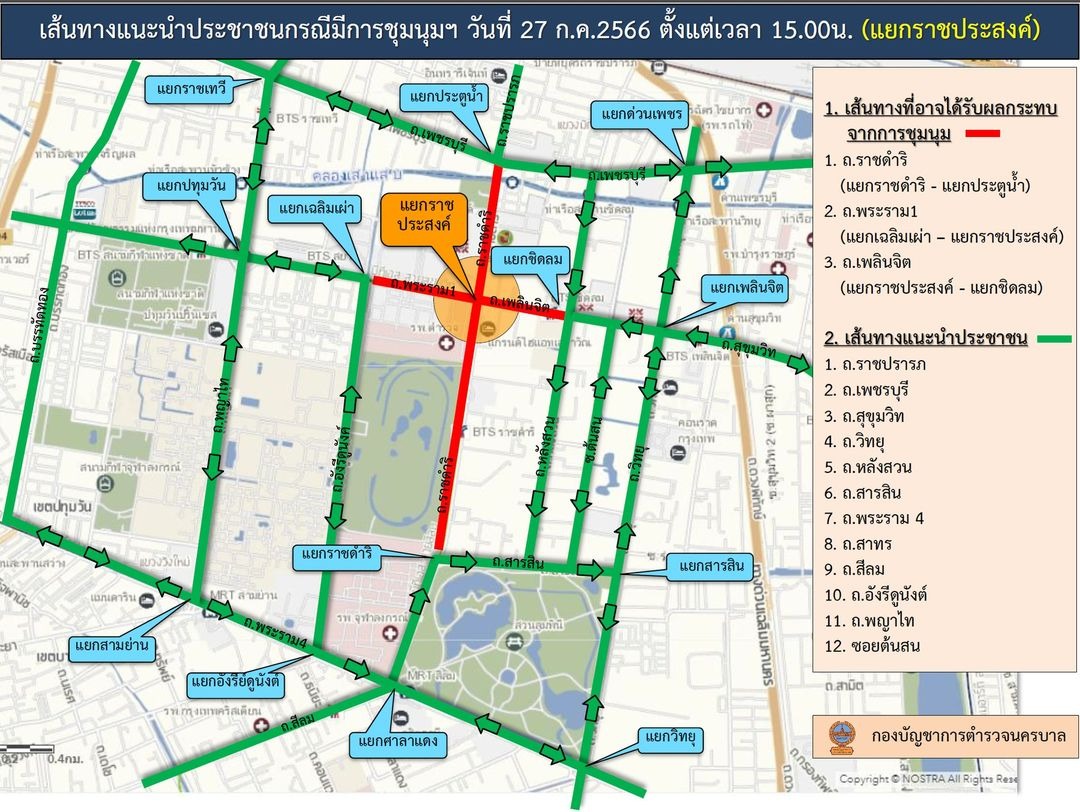 BANGKOK, July 27 (TNA) – The Metropolitan Police have advised motorists to avoid Ratchaprasong intersection in Pathum Wan district as protesters plan to stage a political rally there at 5 p.m. today.