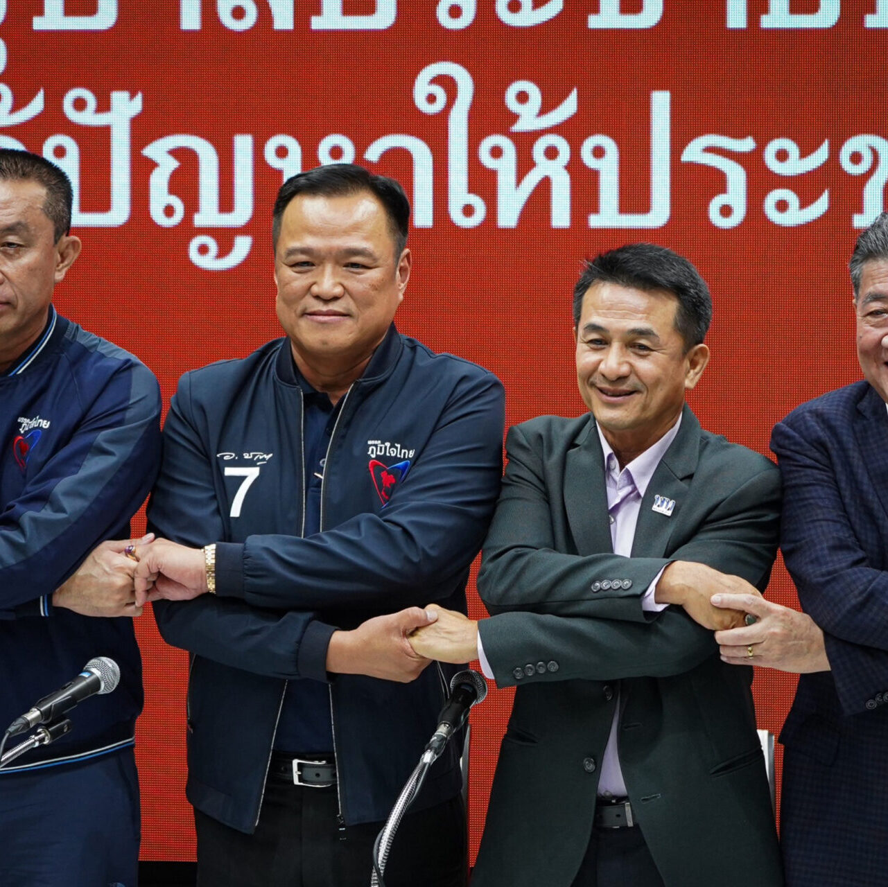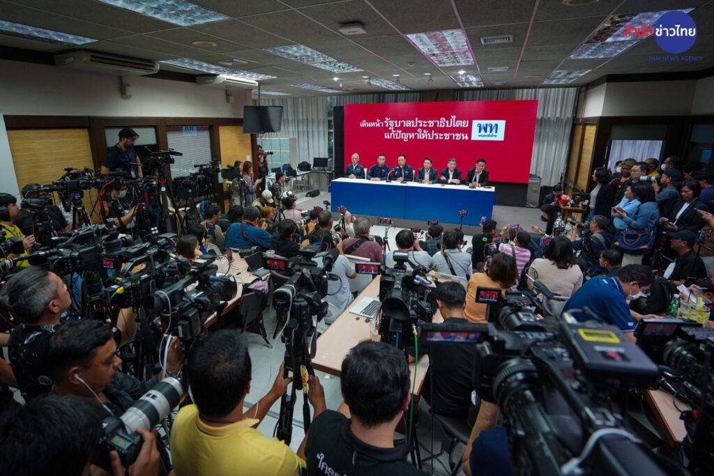 They hold a joint press conference at the Pheu Thai party headquarters to establish new coalition allies, beginning with the total of 212 House seats including 141 seats of Pheu Thai and 71 seats of Bhumjaithai.