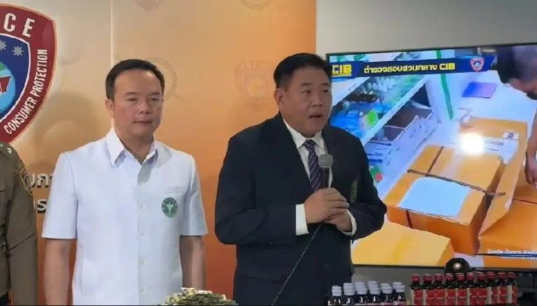 BANGKOK, Aug 16 (TNA) – Police and Food and Drug Administration (FDA) officials raided drug stores without qualified pharmacists, illegally selling large amounts of cough medicine for customers to make a drug cocktail known as 4×100.