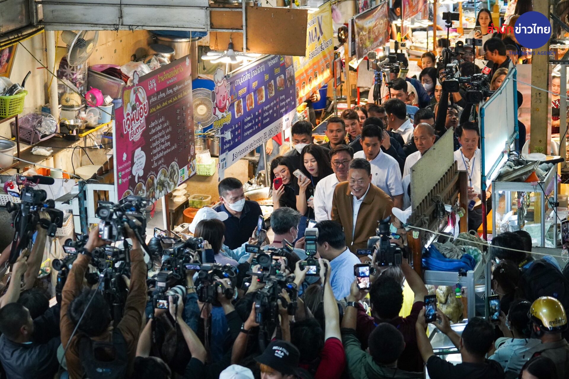 Upon arriving at the market, the crowd eagerly welcomed Mr. Srettha. Some local traders gathered, expressing their curiosity about when the government would approve the digital 10,000 baht subsidy for the citizens.