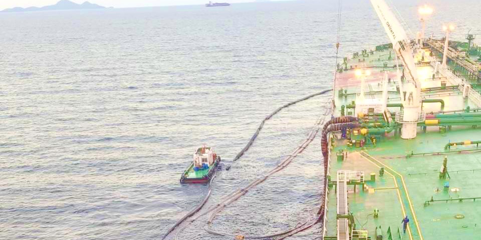 The valves connecting the SBM-2 were closed, the oil boom and dispersant have been put in place to prevent the oil spread.