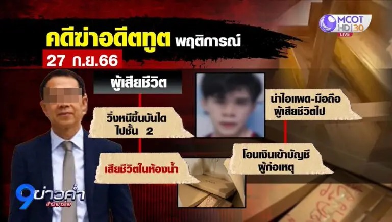 The murder took place at the victim’s house in Soi Vipavadi 20 and CCTV footage captured the suspect who has been on the run, crossing the border into a neighboring country.