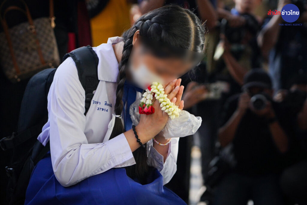 The school community gathered to offer their condolences for the departure of Miss Sirada Sinprasert, also known as Teacher Jeab, a computer teacher at Sacred Heart Convent School, who lost her life during a student shootout on Nov 11. The school administration assured full support and assistance to Teacher Jeab’s family.