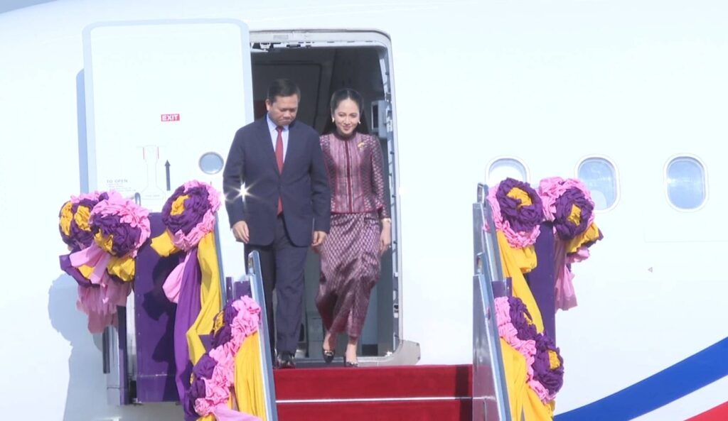 BANGKOK, Feb 7 (TNA) – Cambodian Prime Minister Hun Manet and his spouse have arrived in Thailand for an official visit, upon the invitation of the Thai Prime Minister.