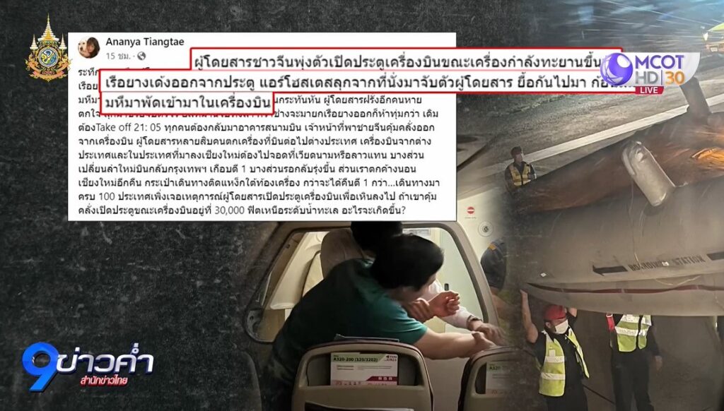 CHIANG MAI, Feb 9 (TNA) – A 40-year-old Chinese-Canadian man, identified as a computer engineer, caused a disturbance by trying to open the emergency exit of an Airbus A320 operated by Thai Airways as it was preparing to take off from Chiang Mai International Airport.