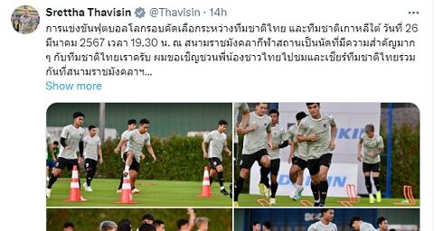 Mr. Srettha on Sunday posted a set of four pictures of Thailand’s national football team also known as “Changsuek” or the War Elephants during the training session on his social media platform X, formerly known as twitter. He also posted a message that the World Cup qualifier between the Thai national team and the South Korean national teams a very important match. He would like to invite our Thai brothers and sisters to watch and cheer the Thai team together at the Rajamangala Stadium or cheer through the live broadcast on television.