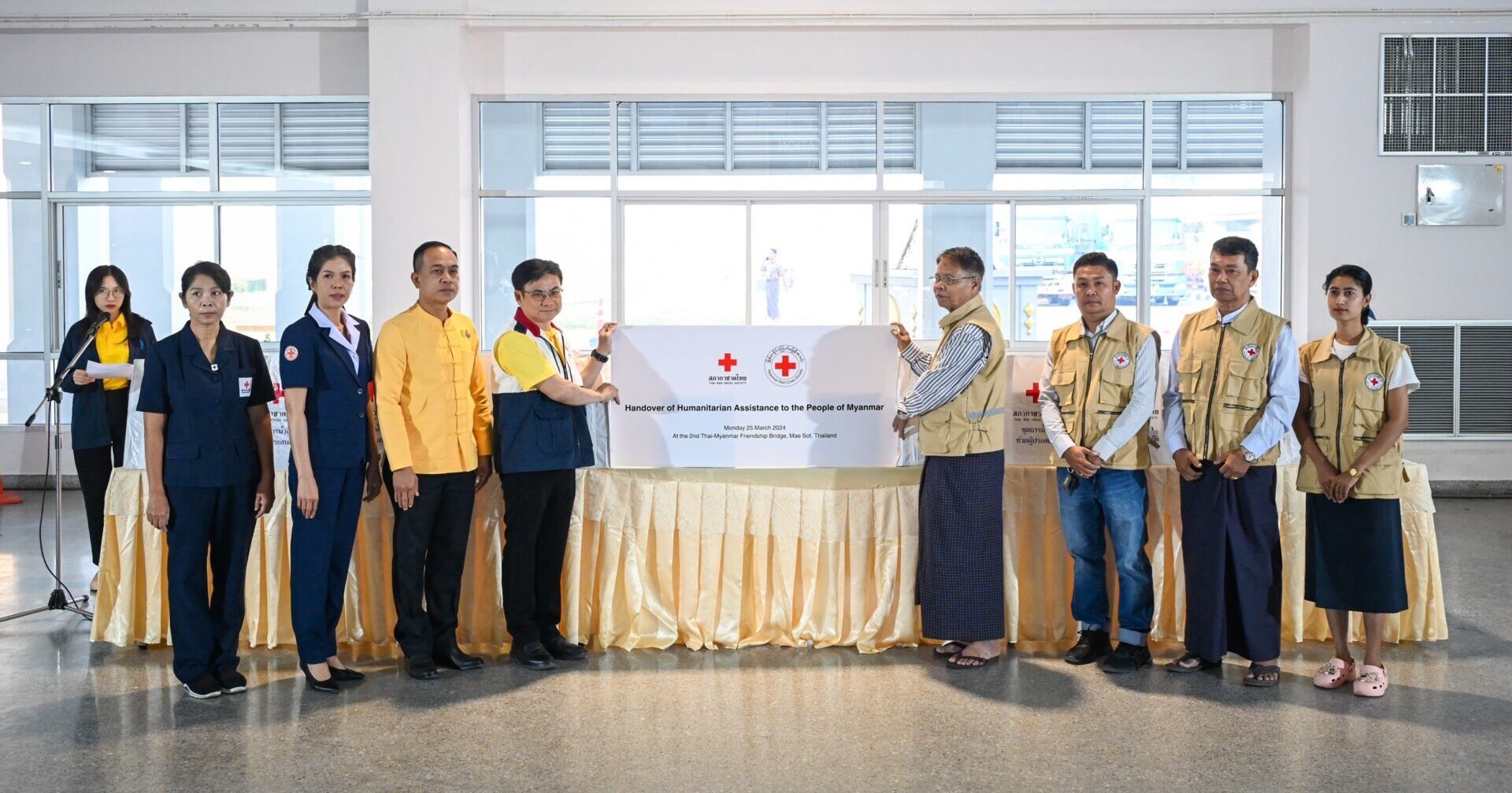 The handover ceremony of humanitarian assistance between the Thai and Myanmar Red Cross Societies was held on Monday on the Thai side of the 2nd Thailand-Myanmar Friendship Bridge in Mae Sot district of Tak Province.