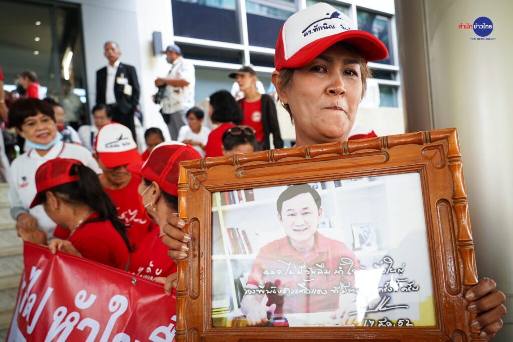 Thaksin remembered the Red Shirt protesters who had fought alongside him during political turbulence and tried to engage in conversation and hugs, asking, “Are you doing well? Thank you for coming to welcome me,” and trying to stop for photos with everyone.