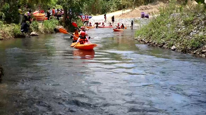 PHATTHALUNG, March 27 (TNA) – Paphayom Forest Rapids has become a bustling destination as tourists gather to paddle through the rapids, cool off in the waters.