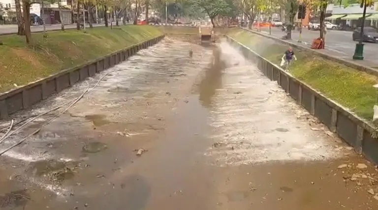 Municipal officials in Chiang Mai have begun draining water from the city moat, along with spreading disinfectant before letting them dry in the sun.