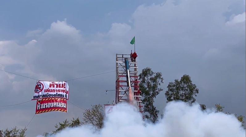 KALASIN, May 27 (TNA) – Rockets Soar into the Sky at Bun Bang Fai Festival. In the Isan region of northeastern Thailand, the Bun Bang Fai Festival, also known as the Rocket Festival, is a vibrant celebration that marks the beginning of the rainy season. This lively event is deeply rooted in local beliefs and traditions, with the central focus being on launching homemade rockets towards the heavens to appease the rain gods and ensure bountiful rice harvests.