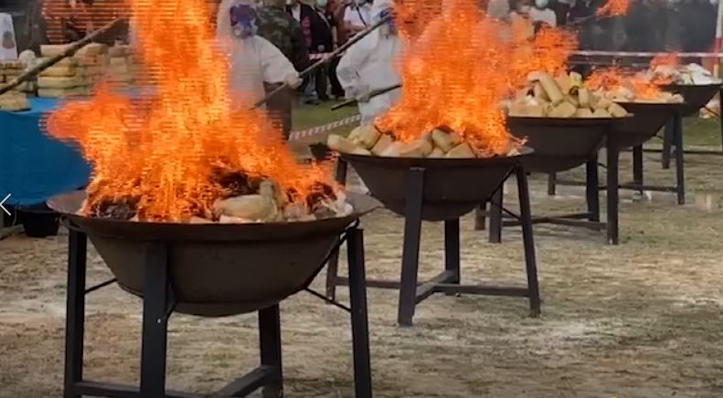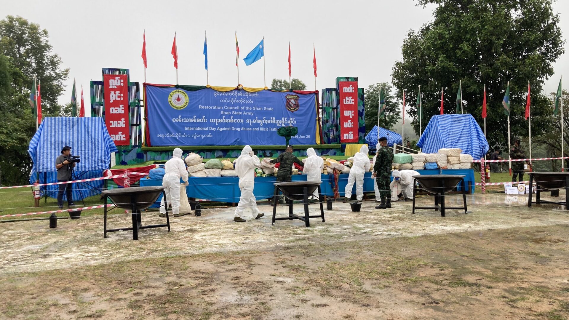 SHAN STATE, MYANMAR, June 26 (TNA) – The Shan State Restoration Council (RCSS)/ Shan State Army (SSA) burned seized drugs on World Drug Day. The operation team has consistently cracked down on drug trafficking rings, leading to today’s incineration event.