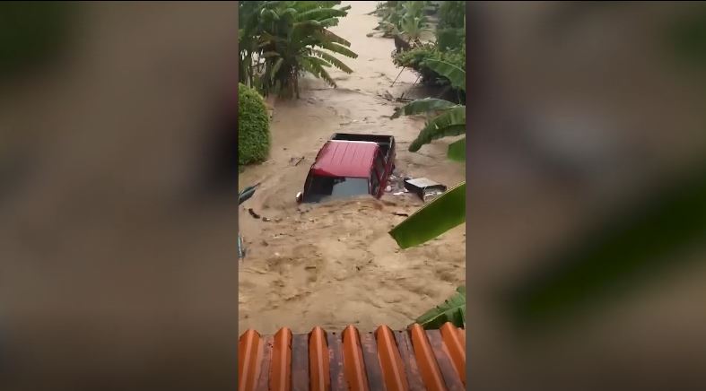 Residents say this is the worst flooding they have seen in decades, especially in areas near the Baan Huakhuan waterfall, which receives water from the Kamala mountain range. The force of the water was strong enough to uprooted trees from the mountains.