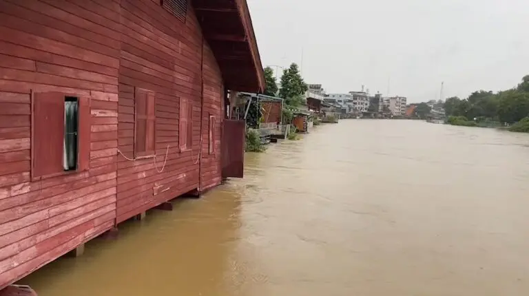 The flood situation in Chanthaburi remains critical, with water levels continuing to rise. Authorities have raised the flood alert level to red, warning residents living near the Chanthaburi River to be on high alert and move valuables to higher ground.
