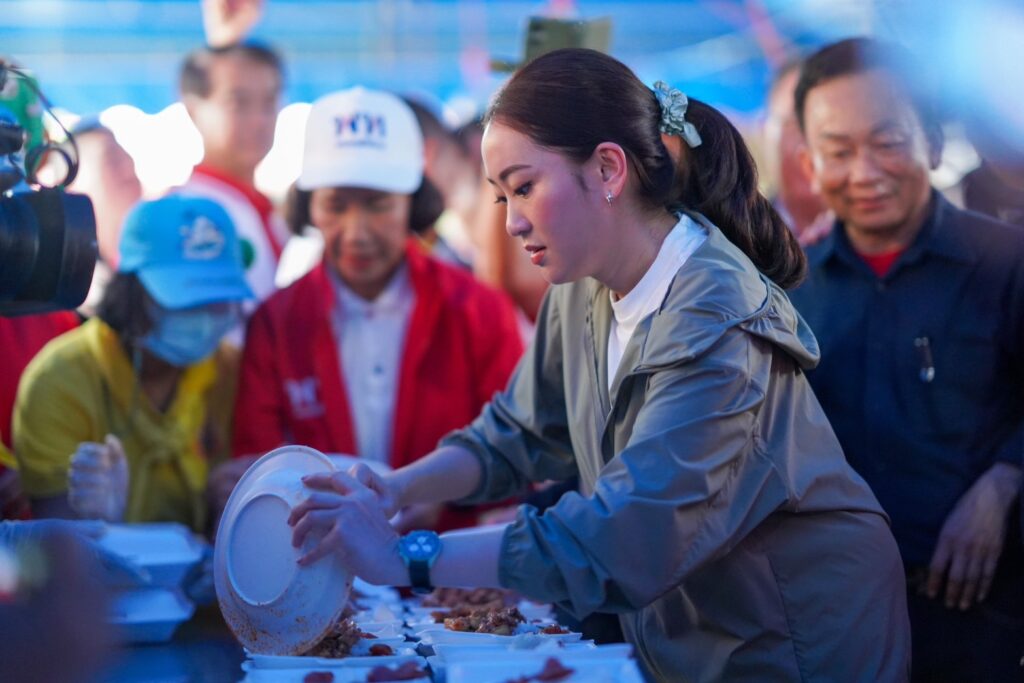 At a makeshift kitchen, Paetongtarn joined volunteers in preparing boxed meals for affected residents. She then distributed relief supplies to flood victims. The Prime Minister’s visit is part of a broader tour of the flood-affected region.