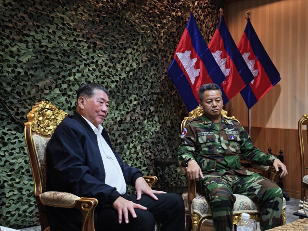 On Thusday evening, Phumtham Wechayachai, Deputy Prime Minister and Minister of Defence, along with General Natthapol Nakpanich, Deputy Minister of Defence, General Thongchai Rodloy, Army Chief of Staff, and their delegation, met with General Tea Seiha, Cambodian Deputy Prime Minister and Minister of Defence, General Eth Sarath, Deputy Commander-in-Chief and Joint Chief of Staff, and General Mao Sophan, Deputy Commander-in-Chief and Commander of the Royal Cambodian Army, and their delegation at Aranyaprathet district of Sa Kaeo province.