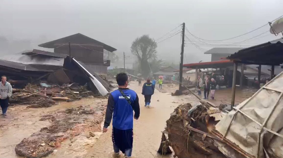 A landslide caused by continuous heavy rainfall struck the village of Pang Ung in the Mae Chaem district of Chiang Mai. The incident, which happened around 3 a.m., buried and severely damaged dozens of homes.