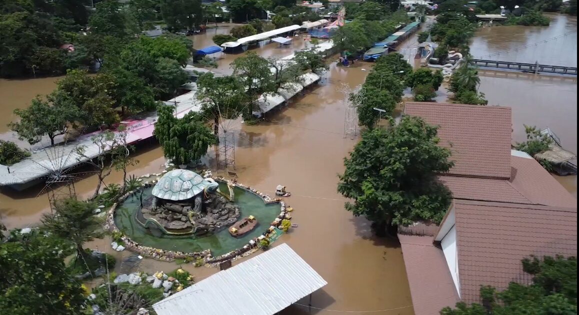 In Phitsanulok, flash floods hit multiple districts, damaging over farmland and prompting a “red flag” warning for residents near the rising Khek River. -819 (TNA)